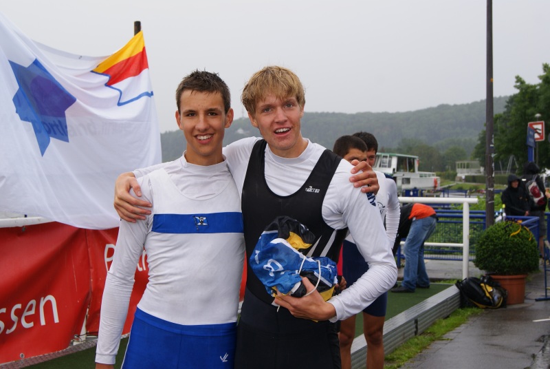 Beide Meisterschaftsmedaillen wurden im jüngeren Junioren-Jahrgang (15/16 Jahre) über die Renndistanz von 1500 Metern gewonnen. Jannis Scheuenpflug und Lukas Rupp waren für die Auswahl des „Team Bawü“ gemeldet. Jannis Scheuenpflug bestritt das Rennen im Zweier-ohne gemeinsam mit Marc Cordes aus Nürtingen. Nach den Vorentscheidungen zählte das Duo zu den Favoriten. Im Finale spielten die beiden ihre ganze Stärke aus und lieferten sich an der Spitze ein packendes Rennen mit der Renngemeinschaft aus Münster und Waltrop. Im ständigen Führungswechsel und im spannenden Bord-an Bord-Kampf flogen diese beiden Boote nahezu in Richtung Ziel. Die weiteren Mannschaften aus Treis-Karden, München, Krefeld und Berlin konnten diesem hohen Tempo nicht folgen und fielen immer weiter zurück. Auf dem letzten Streckendrittel griffen Jannis Scheuenpflug und Marc Cordes die andere Mannschaft unermüdlich an und setzen einen Spurt nach dem anderen. Letztlich fiel die Entscheidung auf der Ziellinie mit dem besseren Ende für die Gegner. Der Gewinn der Silbermedaille und der Titel des Deutschen Vizemeisters U17 stehen am Ende aber für einen großen Erfolg des RGE-Talents Jannis Scheuenpflug.